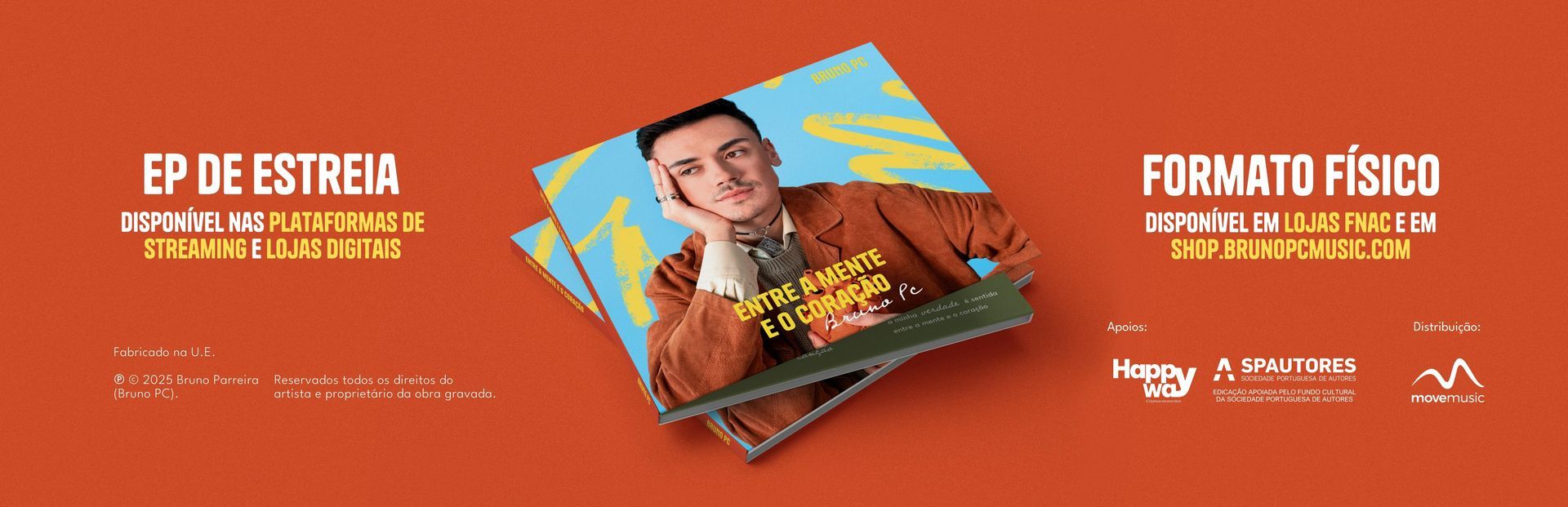 ‘Entre a Mente e o Coração’ é o EP de estreia de Bruno PC, apoiado pela Sociedade Portuguesa de Autores (SPA), onde o cantor e autor português mergulha na complexidade do amor e da saúde mental, temas centrais do seu percurso artístico e pessoal.